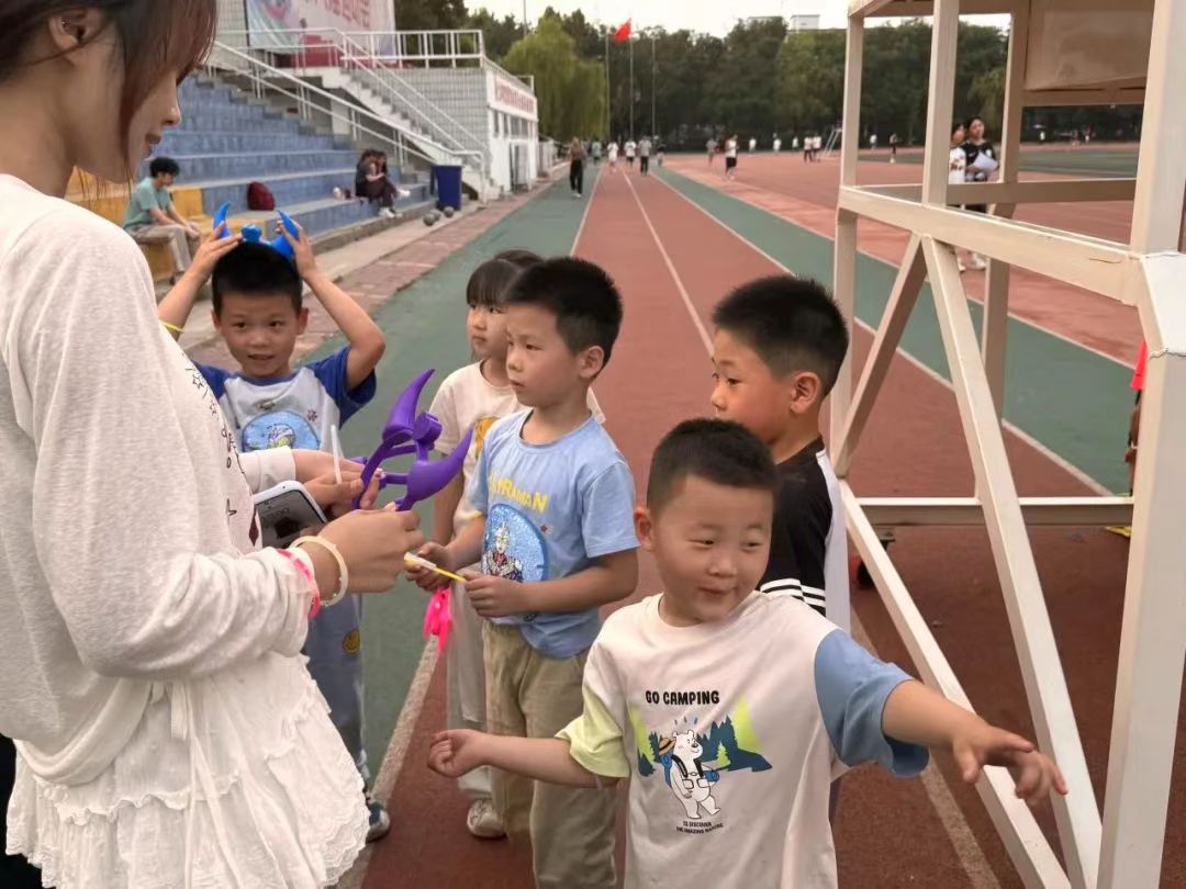 傍晚将近,微风呢喃,同学们佩戴着色彩缤纷的荧光手环,在跑道上尽情挥洒汗水、释放青春活力。无论是结伴而行的默契,还是独自冲刺的执着,都在夕阳的余光下熠熠生辉。本次活动不仅吸引了同学们的热情参与,更吸引来了几位童真烂漫的“小嘉宾”,他们也与同学们一起奔跑,拥抱晚霞。