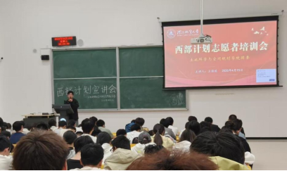 团委于4月15日晚在教一楼111教室举办了2026年西部计划志愿者培训会。本次培训由团委秘书长王佳欢担任主讲,就西部计划的相关政策和注意事项为同学们做了详细讲解。