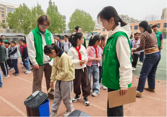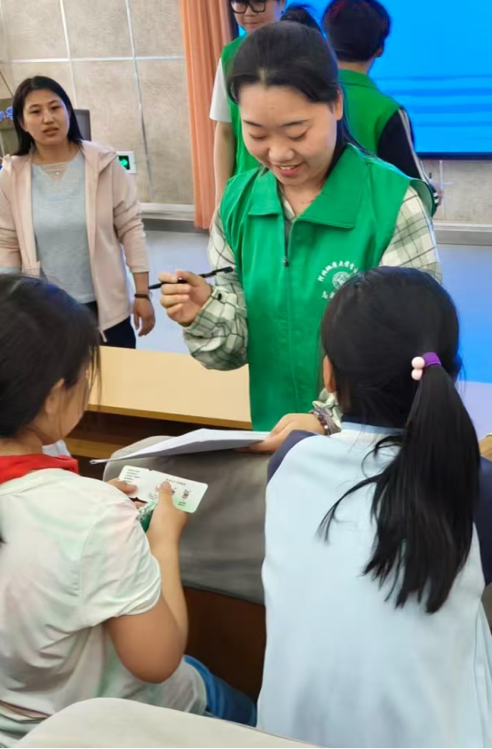在环保趣味闯关环节,“环保知识大挑战” 中,孩子们踊跃举手答题,每一次响亮的回答都收获了鼓励的贴纸,答错的题目也由科普团成员耐心讲解,让知识真正入脑入心;“垃圾分类小能手” 游戏里,孩子们化身分类小达人,认真识别手中的垃圾卡片,将它们精准投放至对应分类垃圾桶,在游戏中掌握了垃圾分类的技巧;“防灾知识问答赛” 则以趣味跳跃作答的形式开展,孩子们随着 “是”“否” 的指令左右跳跃,在紧张又欢乐的氛围中,把防灾减灾的知识点牢牢记在了心里。