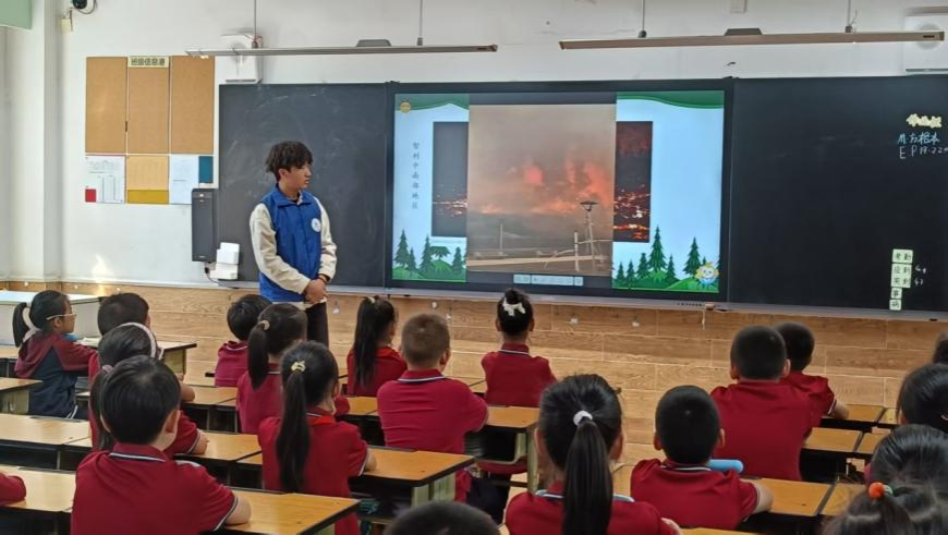 从课堂上专注聆听的眼神,到积极参与问答的热情,此次生态保护科普活动不仅让小朋友们收获了火灾防护与自救的实用知识,更在心中播下了守护森林、爱护自然的种子,懂得用小小行动为祖国的绿水青山添一份力。这场科普活动也成为学院科普团队践行社会责任的生动实践,用知识传递生态理念,让守护自然的意识在心中扎根。