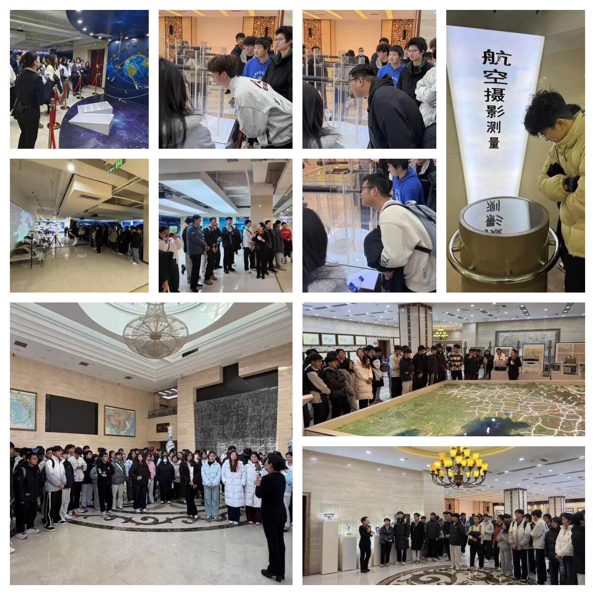 在工作人员的细致讲解下,学生们依次参观了历史测绘区、现代科技展区、遥感与地理信息系统应用区以及沉浸式地理空间体验区。通过丰富的历史资料、先进的技术展示和生动的专业讲解,学生们深入了解了地理信息事业从传统测绘到数字化、智能化的发展历程。