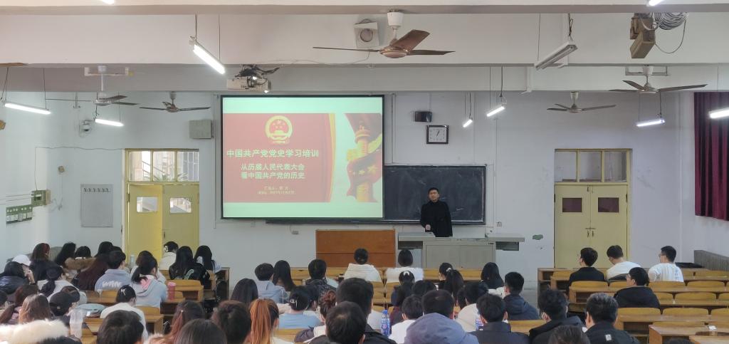 学生党员的党性修养,积极开展党务工作,落实党的政策,李光副书记在10月3日和12月2日分2次在教三101为全体学生党员开展题为“从历届党的代表大会看中国共产党的历史”的培训教育。