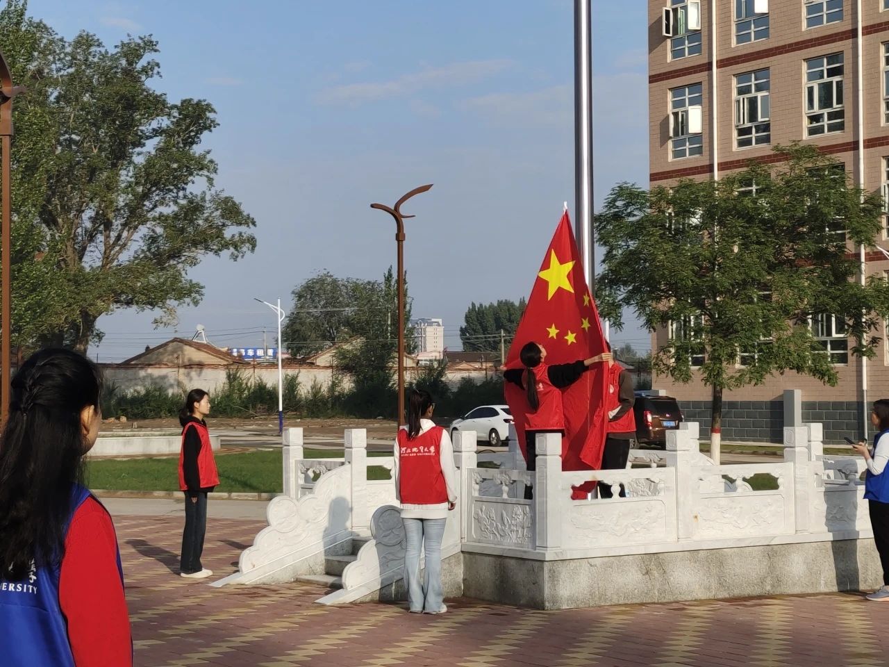 伴随着清脆的脚步声,国旗护卫队迈着整齐矫健的步伐,护送国旗走向升旗台。在庄严嘹亮的国歌声中,五星红旗冉冉升起,迎着西风飘扬。同学们满怀崇敬之情向国旗行注目礼,这一刻,我们不仅是在表达对国旗的敬意,更是在追忆那些用鲜血和生命捍卫国旗的英雄们......