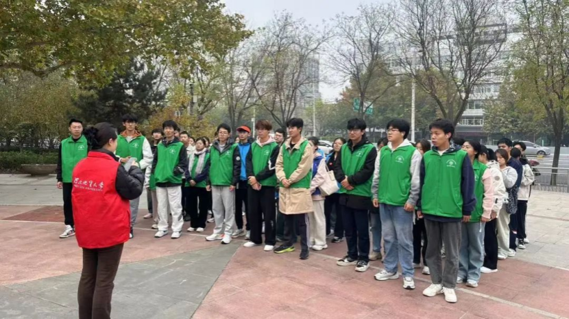 活动前,参与人员在学校主楼前准时集合,负责人崔晓梦进行了清扫活动动员与任务分配,详细介绍了活动流程和清扫事宜后,分发志愿服和清洁工具,完成准备工作后,带领学生统一前往世纪公园。