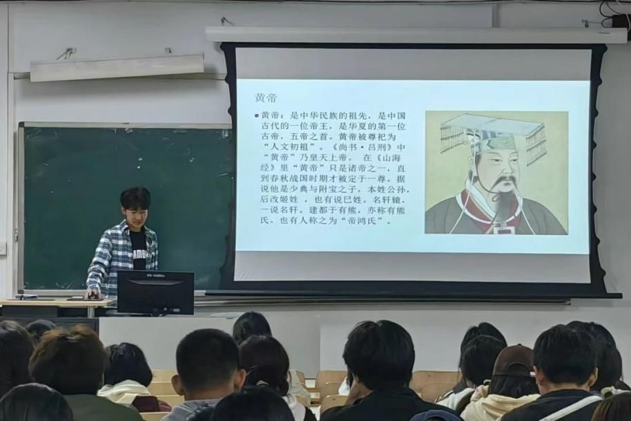 活动伊始,PPT上展示出一幅幅生动的画面,将同学们带入了远古时代。从清明节的活动引入,提出问题引导同学们思考我们祭奠的祖先是谁,从而引出中华民族的祖先——黄帝。