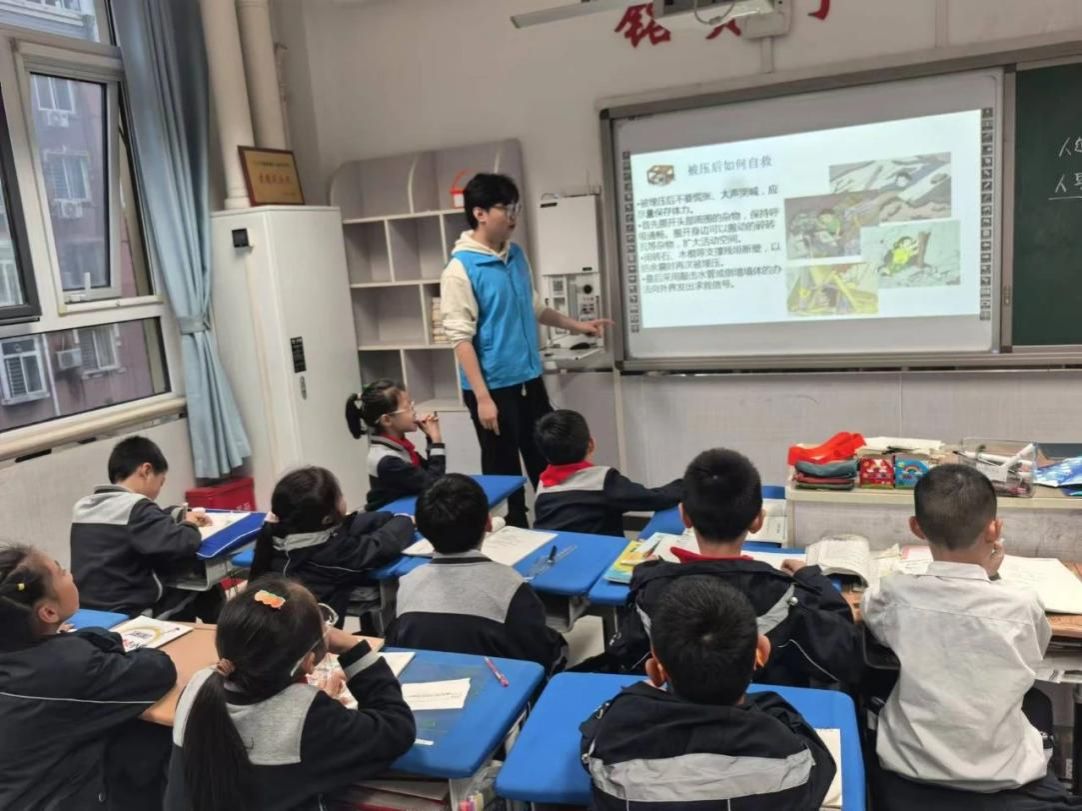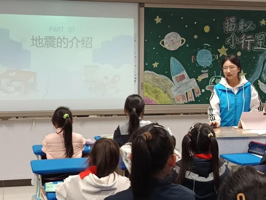 科协前往想象国际小学,开展了一场关于地震灾害相关知识的公益科普活动。此次活动别出心裁,采用了三方齐进的方式,讲解员李雅培、刘田泽和李婧琳三人同时在三个教室开讲,进一步扩大了活动的规模。