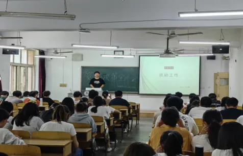 资助宣传大使孟天鹏、张圣峰采用PPT、视频、问答等多种形式对国家的资助政策进行了系统的讲解。以典型资助案例为主线,对家庭经济困难学生认定、生源地国家助学贷款、国家奖助学金、省励志奖学金、勤工助学、建档立卡等国家资助政策和相关工作进行深入解读,对参会学生提出的问题进行了耐心详细的解答,教育和引导学生关注学校的资助政策,积极参与到相关的工作之中,激励同学们自立自强、成长成才、感恩奋进,树立积极向上、刻苦努力的人生态度,从“经济资助”转向“励志强能”,争做担当民族复兴大任的时代新人。
