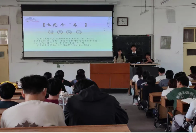 第三轮,谁与争锋,本轮考察同学们的文学素养积累,每队派出一名代表进行抢答,题目内容为诗词常识。经过紧张激烈的抢答环节,我们共同见证了选手们对诗词的深厚造诣和敏捷思维。每一道题目都考验着选手们的知识储备和反应速度,而每一次正确的回答都让我们感受到了诗词的魅力与力量。最后,根据小组积分情况确定本次诗词大会排名。