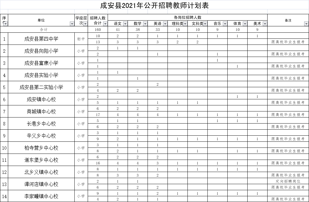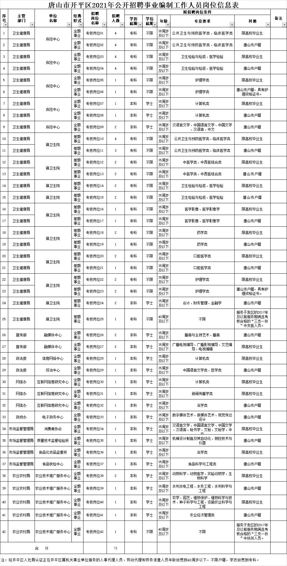 参加本次公开招聘的事业单位共统一招聘工作人员44名。各招聘单位的岗位、人数、条件等情况详见《唐山市汉沽管理区2021年事业单位公开招聘工作人员岗位信息表》(附件1,以下简称《岗位信息表》)。