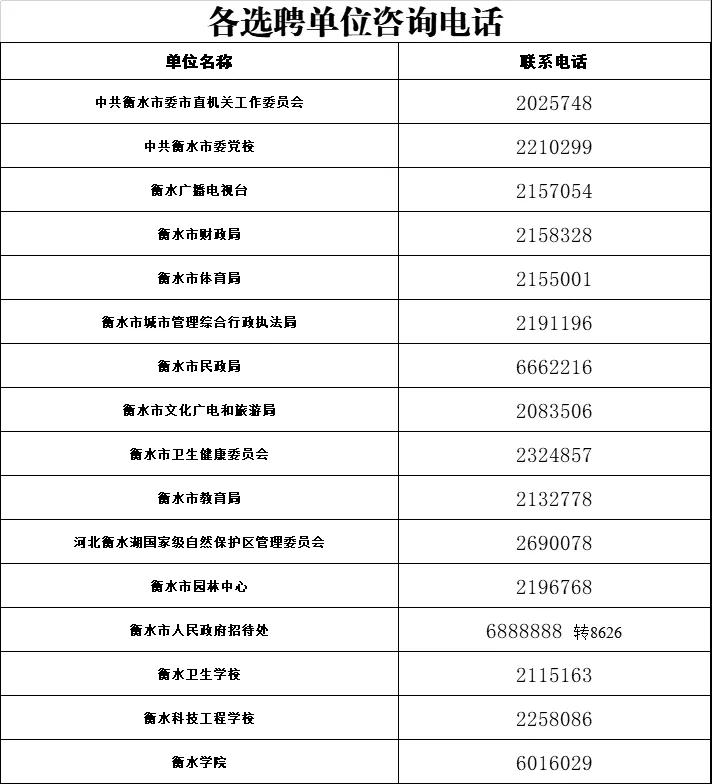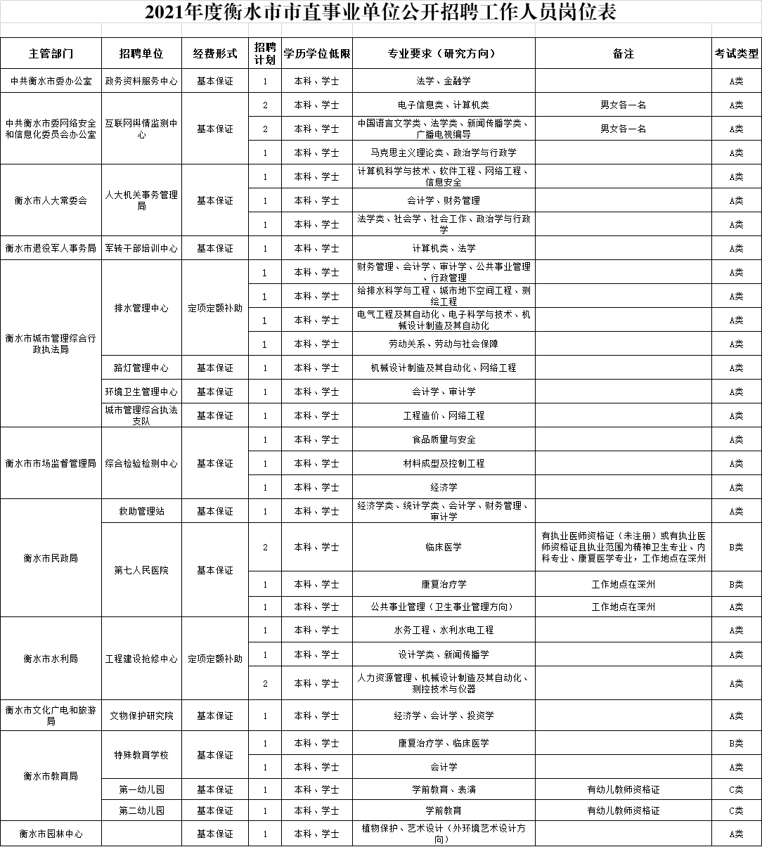 岗位有其他要求的以岗位要求为准,详见《衡水市市直事业单位公开招聘工作人员岗位表》。