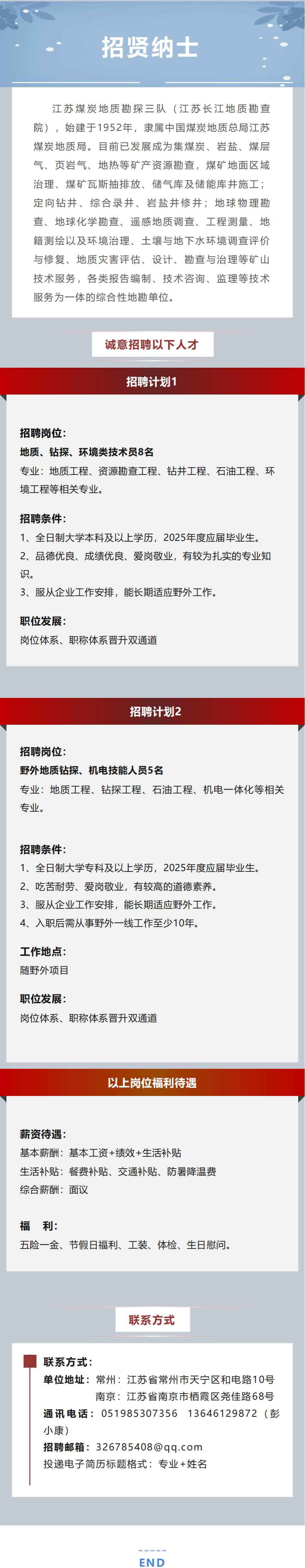 【招聘信息】江苏煤炭地质勘探三队